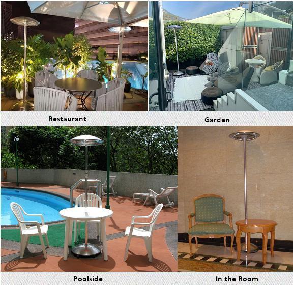Our group has developed new Patented 360° Electric Infrared Radiant Heaters. With the recent fluctuations in natural gas/oil prices, you will find that our 360° Electric Infrared Radiant Heaters is a timely, environmental friendly and cost saving alternative for your customers. As we use metallic Incoloy heating elements, your customers do not need to breathe in harmful particles or other discharges from burning gaseous fuel. Our heaters do not emit the bright and glaring visible light as in the case of quartz heating elements and do not emit dangerous gas particles, and can be easily moved indoor or outdoor with the lockable wheels. Free Standing Model and the ceiling mounted Pendant Heater Model are much welcome at gardens, garages, offices, solariums, club houses, restaurants, elderly homes, factories, etc.